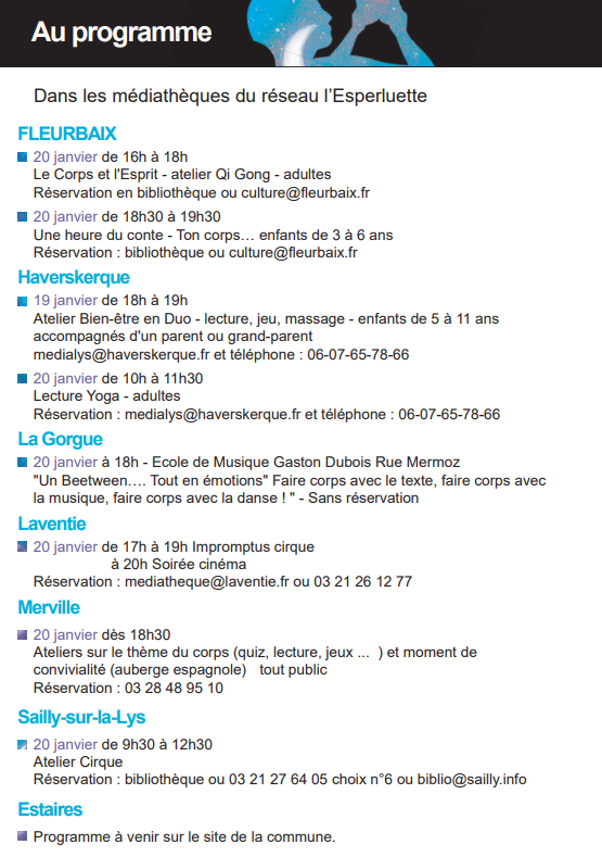 Réservation : mediatheque@laventie.fr ou 03 21 26 12 77